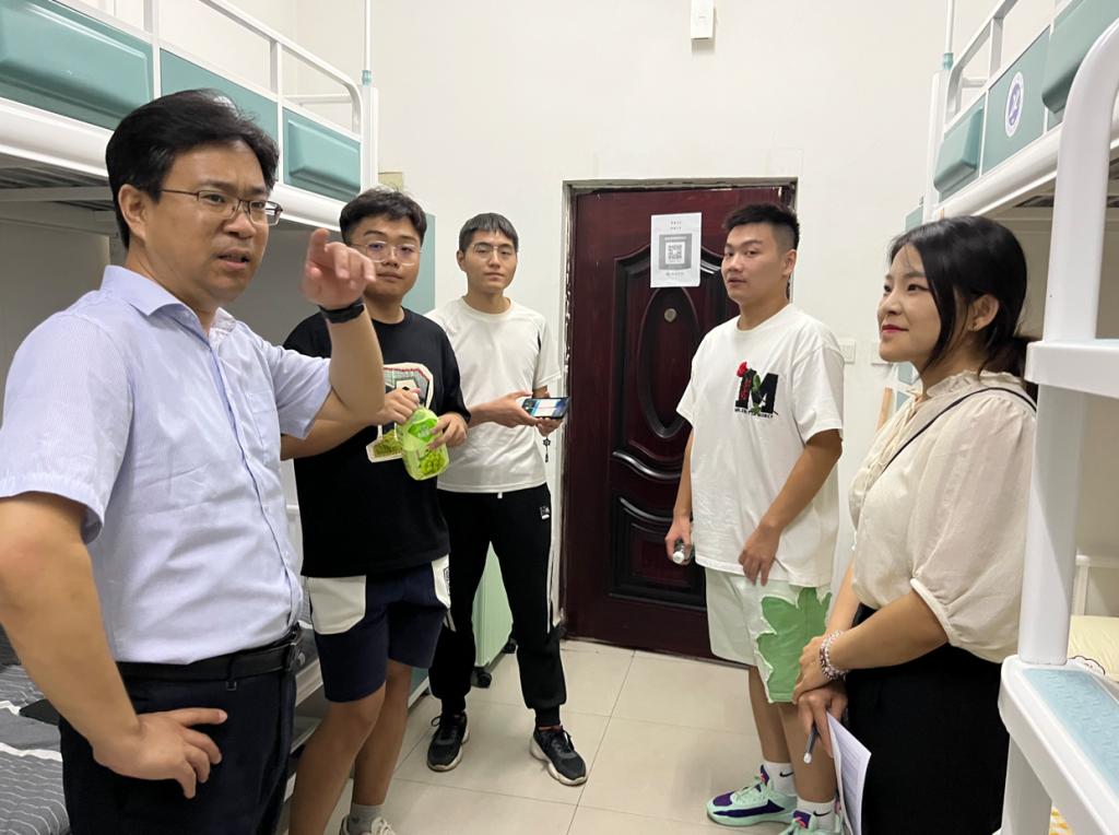 9月6日,在新生入校报到当晚,公司党委书记宋海洋、员工工作办公室主任马武军、2023级辅导员卢筱佳深入新生宿舍,详细了解新生的住宿和生活情况。在走访过程中,宋海洋与新生进行亲切交谈,从住宿饮食、生活习惯、发展规划等多方面深入了解员工情况,询问同学们的报到流程是否顺利,关心同学们的入住体验,并进行现场沟通解决,帮助同学们尽快适应新生活。宋海洋叮嘱新生与同学之间要相互关心,相互帮助,尽快调整好状态、适应大学新环境,以良好的状态迎接老员工活。
