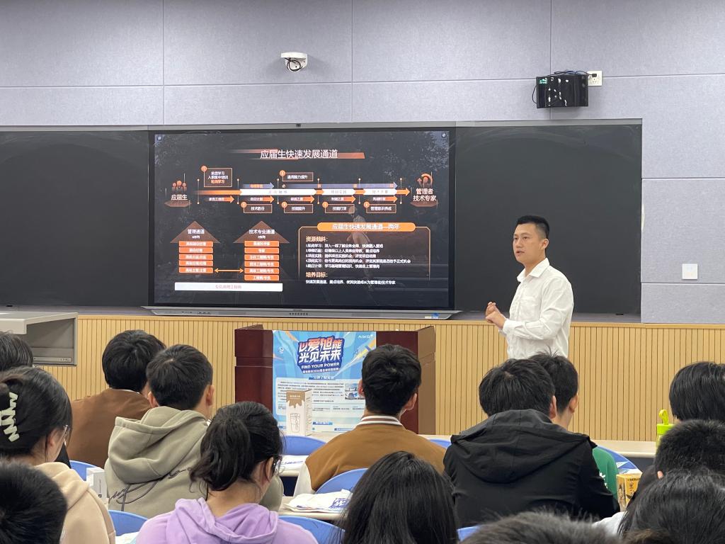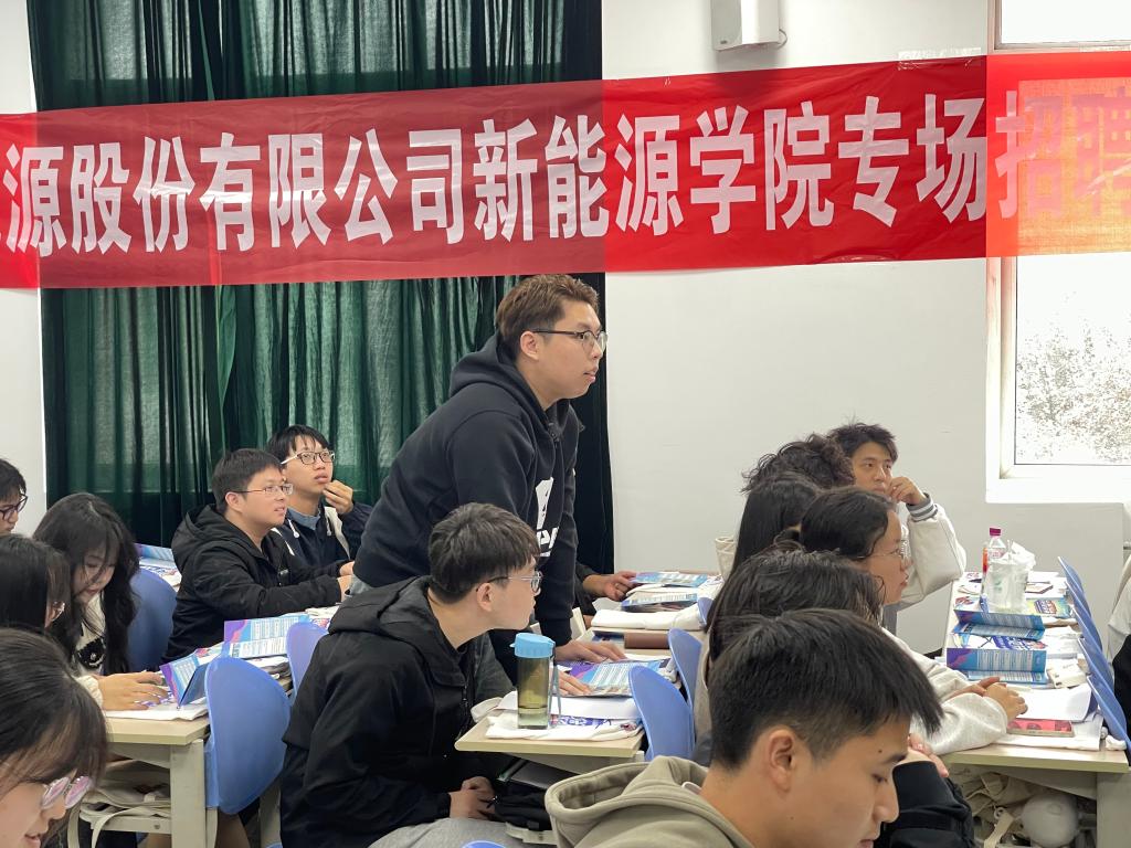 10月12日下午,公司在鄠邑校区A207教室进行爱旭新能源股份有限公司专场招聘会,宣讲会现场同学们踊跃参与互动,现场积极投递简历并进行现场面试。
