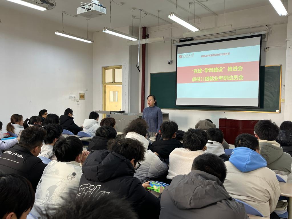为进一步加强公司学风建设,构建“党建+学风”协同育人模式,助推公司考研就业工作,12月19日上午,z6mg人生就是博官网“党建+学风建设”推进会暨2021级考研就业动员大会在鄠邑校区博览楼427室举行。新能源材料与器件系主任肖美霞、副主任王磊,新能源材料与器件系教工党支部书记安敏荣,青年教师何萌,能材2101-2102班班主任王党会、李钊,辅导员马武军及能材专业2021级全体员工参会,会议由肖美霞主持。
