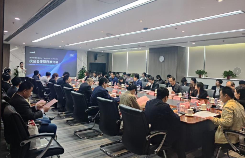 426日下午,隆基绿能科技股份有限公司(以下简称“隆基绿能”)(电池)Open-day 暨校企合作促进交流会在隆基集团总部大楼举行,公司党委书记宋海洋、学工办主任马武军受邀参加合作交流活动,同时参加交流的还有陕西科技大学,西安建筑科技大学,西安理工大学、西安科技大学,兰州理工大学,兰州交通大学等11所高校的相关公司负责人。企校双方就进一步扩大校企合作,深化开展校企协同育人、科研攻关进行交流座谈。