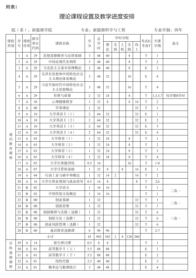 2021版新能源科学与工程本科专业人才培养方案