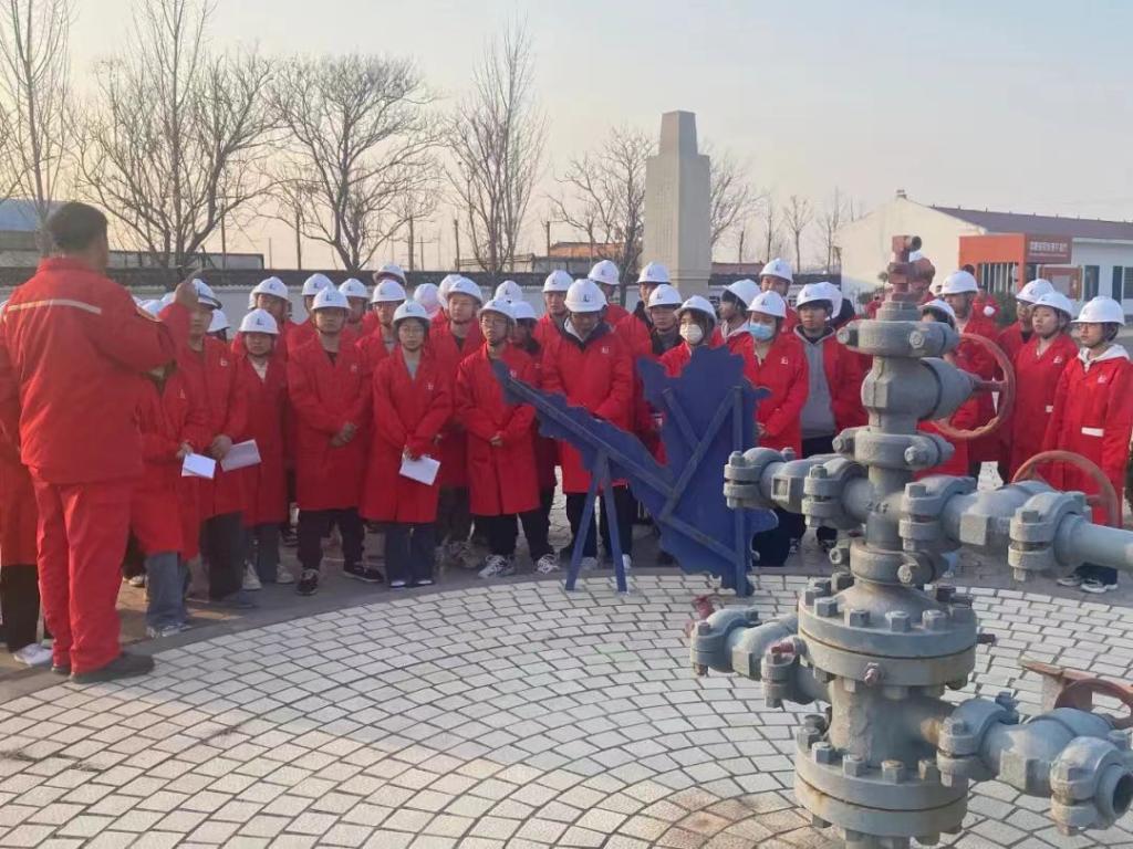 在中原油田组织部的统一协调下,在油气加工技术服务中心专家的带领下,60余名师生先后前往“绿氢”生产制备车间、文一联合站、油田光伏发电项目基地、中原油田勘探开发研究院新能源实验室开展生产实践,学习新能源与油气融合发展相关技术、明确了多能互补技术在油田发展过程的作用。同时,师生们还参观了中原油田展览馆和冀鲁豫边区革命根据地旧址纪念馆,接受了石油精神和老一辈革命精神的洗礼与教育,将课程思政融入生产实践教学。
