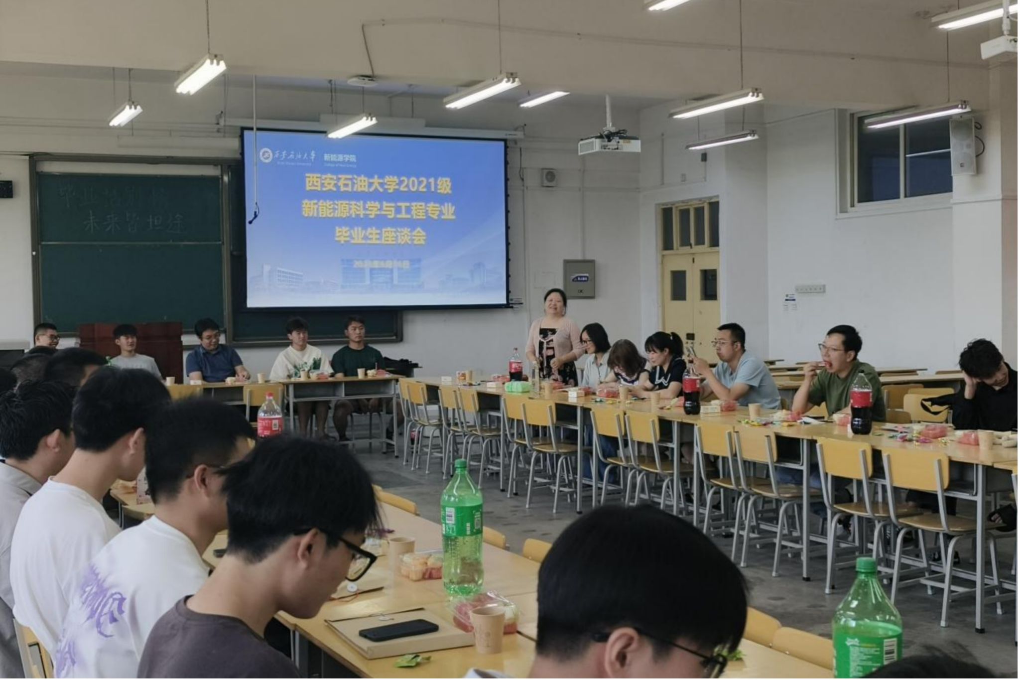 殷殷寄语:师长深情嘱托。座谈会上,教师们深情回顾了与同学们共同度过的大学时光,对同学们在各方面取得的优异成绩表示祝贺,为即将开启人生新征程的毕业生送上诚挚祝福,并寄语毕业生要永葆求知热情,在行业发展中勇担使命。感恩回响:学子真情告白。毕业生们动情分享了在校期间的成长与感悟,畅谈对未来的规划与憧憬,并通过精心准备的节目表达对公司和老师的感激之情,和对同学们的依依惜别之情。现场掌声不断,不少师生热泪盈眶。建言献策:共绘发展蓝图。毕业生们畅所欲言,围绕专业学习、学风建设、专业实践等方面积极建言献策,提出了许多宝贵的建议。扬帆起航:续写新能源篇章。活动最后,毕业生们走上讲台,在黑板上留下毕业寄语。与会教师对同学们送上祝福,勉励同学们继续心怀梦想、砥砺前行,在今后的学习工作中,继续发扬石油精神和铁人精神,在新的人生征程中听党号召、持续奋斗,在青春赛道上跑出石大青年的优异成绩,用青春谱写出人生奋斗赞歌。