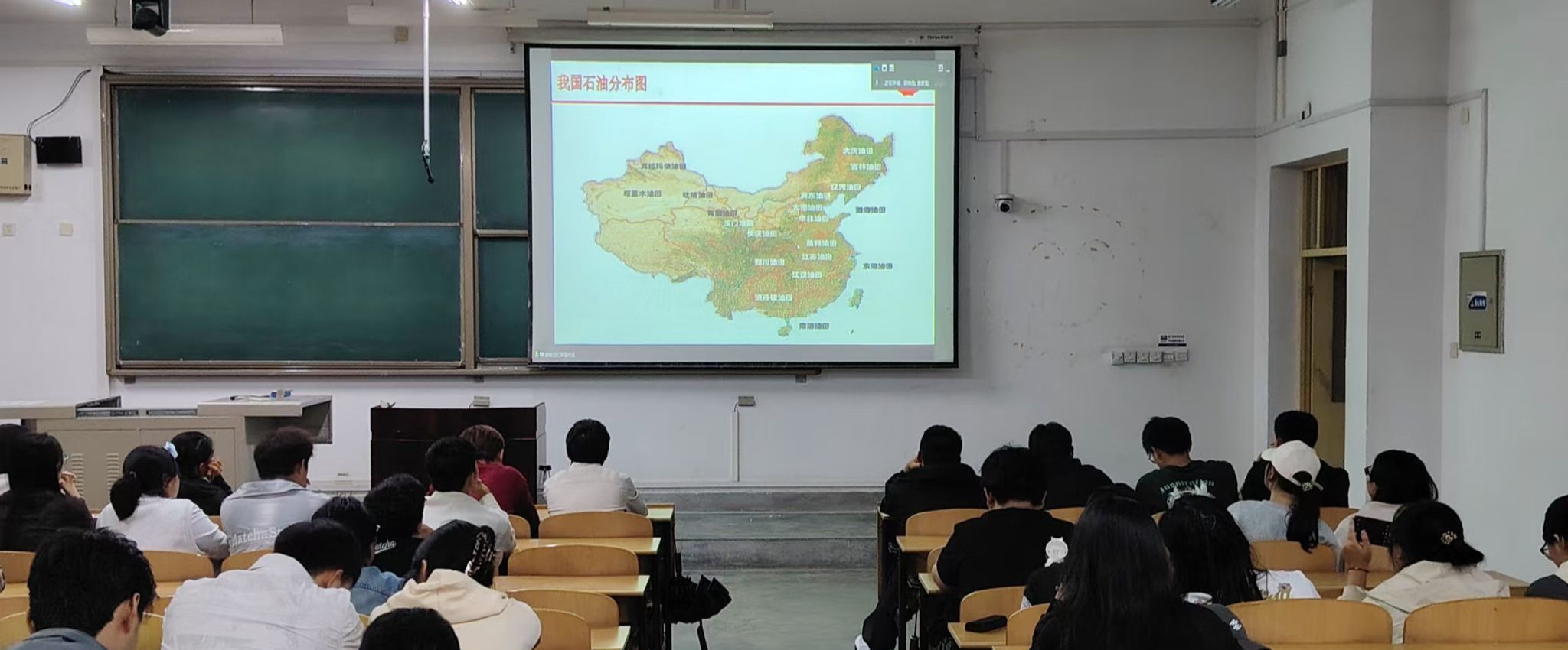 胡晓龙首先从能源行业宏观背景出发,系统阐述了传统能源与新能源之间的关系。他指出,传统能源是能源体系的“压舱石”“稳定器”,而新能源是未来能源结构调整和绿色低碳转型的重要方向,二者并非替代,而是协同发展、互补共进的关系。在我国能源战略中,传统油气企业正积极布局新能源领域。近年来,中国石油正在加快推进绿色低碳转型,布局“六大基地”和“五大工程”,建设清洁能源产业化发展示范基地,推动油气与风光电氢等新能源融合发展,构建多能互补的低碳能源体系。同时,结合新疆地区的自然资源与产业基础,重点介绍了新疆油田在新能源领域的发展现状与未来规划,包括国家加快“沙戈荒”新能源大基地建设等。他强调,新疆地区风光资源丰富,具备规模化开发新能源的天然优势,传统油气企业依托现有场地、管网及产业基础,正在积极推进光伏、风电、储能、氢能等新能源项目,打造“油气主业+新能源”协同发展新模式。他鼓励同学们要立足专业、拓宽视野,主动了解传统能源企业转型中新出现的业务需求和人才缺口。