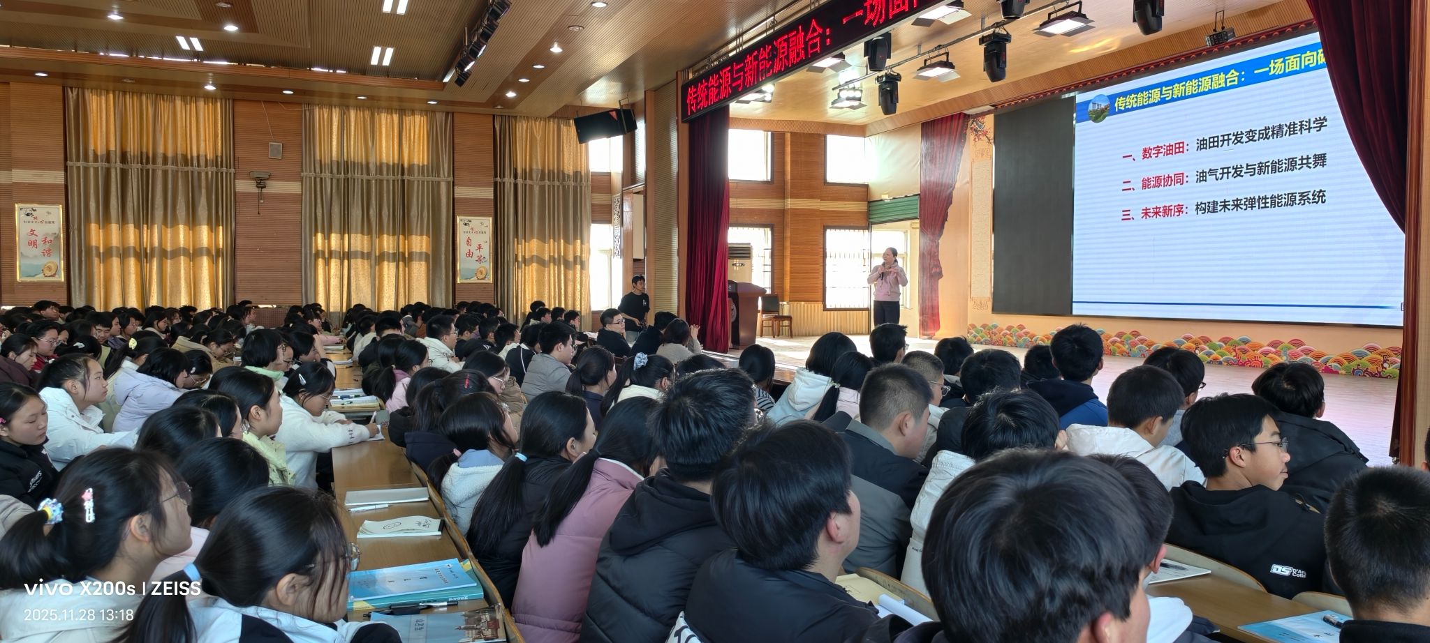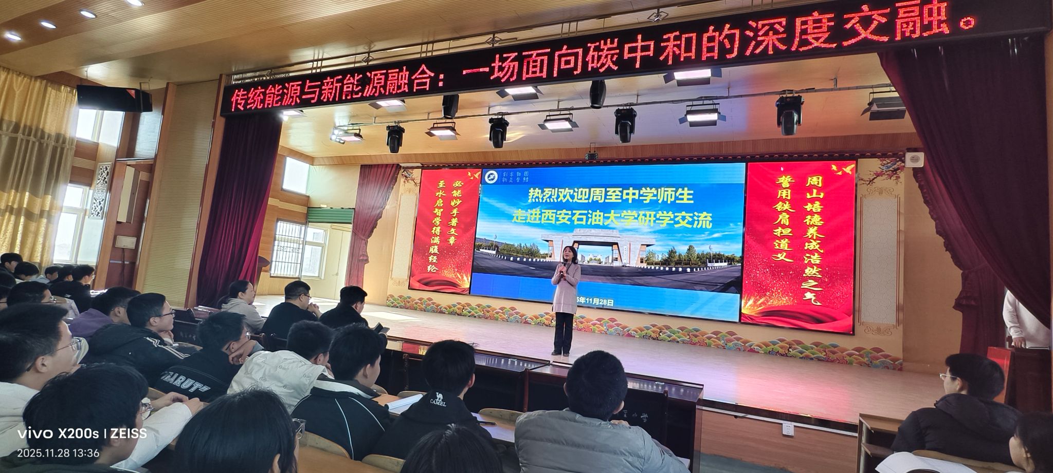 11月26日和28日,在员工蔡乾锋教授的大力助力下,公司党委书记廖敏一行四人赴周至中学和周至第二中学开展科普宣传。余华贵副教授为师生做了《传统能源与新能源融合》的专题讲座,生动地讲解了我国能源战略布局,鼓励同学们刻苦学习,实现能源报国的理想。廖敏书记向员工们介绍了公司的历史和发展。蔡乾锋教授和大家分享了自己成长的经历,鼓励同学们从小立大志,打好学习基础。周至中学800余名,周至二中500余名员工先后在现场聆听了讲座。讲座现场还设有互动环节,气氛非常热烈。
